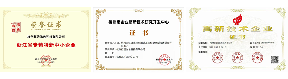 虹譜光色科技注重技術(shù)研發(fā)和創(chuàng)新,不斷引進(jìn)國(guó)際先進(jìn)技術(shù),并在此基礎(chǔ)上進(jìn)行消化吸收和再創(chuàng)新。我們擁有一支二十多年研發(fā)經(jīng)驗(yàn)的專業(yè)工程師團(tuán)隊(duì),具備豐富的光學(xué)檢測(cè)技術(shù)研發(fā)經(jīng)驗(yàn)。憑借卓越的技術(shù)實(shí)力和產(chǎn)品性能,我們獲得了國(guó)家高新技術(shù)企業(yè)、浙江省科技型中小企業(yè)、杭州市企業(yè)高新技術(shù)研究開發(fā)中心等榮譽(yù)證書。這些榮譽(yù)不僅是對(duì)我們技術(shù)實(shí)力和產(chǎn)品質(zhì)量的認(rèn)可,更是對(duì)我們不斷創(chuàng)新、追求卓越精神的肯定。