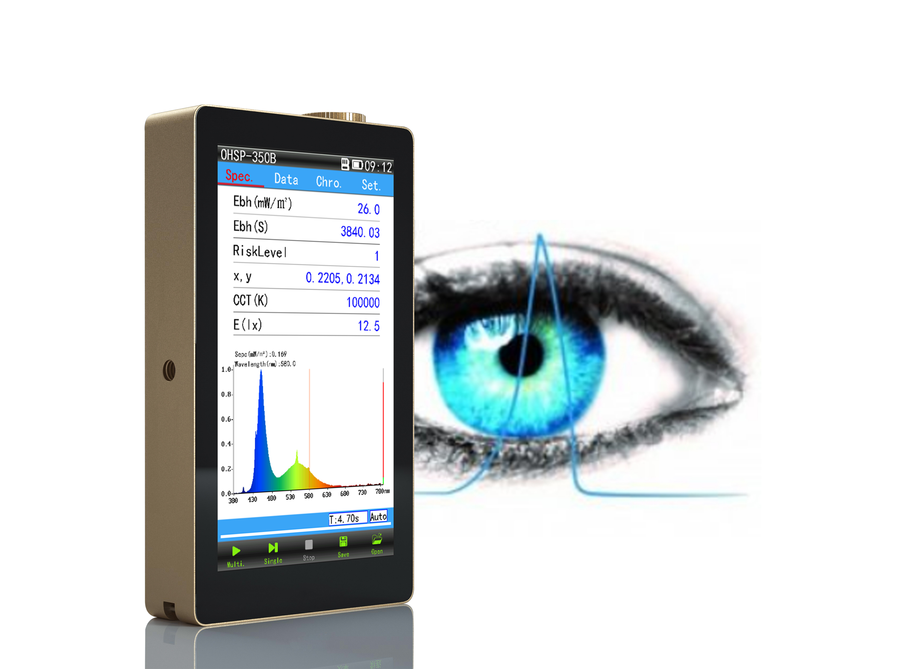 對(duì)于此應(yīng)用,OHSP350B便攜式實(shí)驗(yàn)室級(jí)別光譜儀可以提供最優(yōu)質(zhì)的儀器測(cè)試體驗(yàn), 這種經(jīng)過特殊校準(zhǔn)的儀器可提供380nm - 780 nm可見光范圍的全光譜數(shù)據(jù),其中最危險(xiǎn)的藍(lán)光存在于400至500 nm之間。