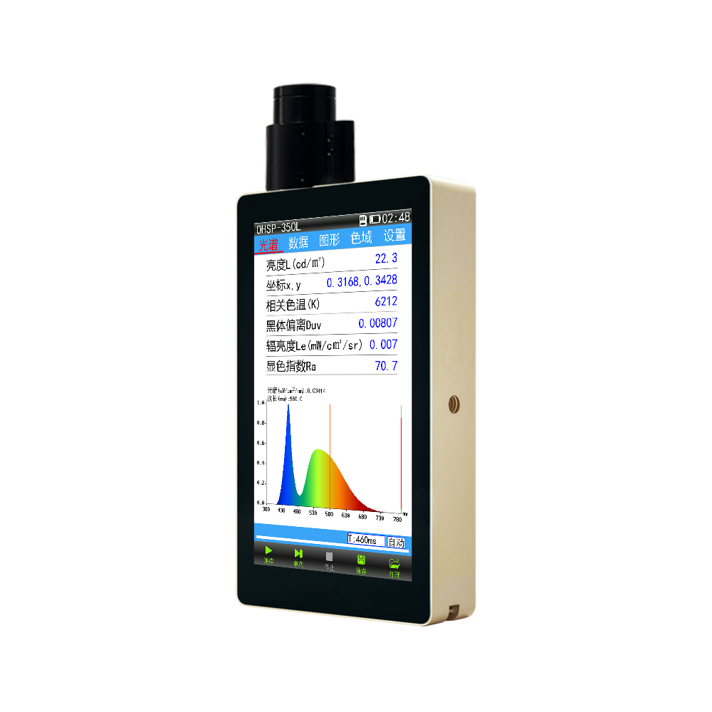 350FL集光譜、亮度、英尺朗伯、色溫、顯色指數(shù)、波長(zhǎng)、輻亮度、色坐標(biāo)、色域覆蓋率、頻閃等測(cè)量功能參數(shù)于一體。采用5英寸大屏,各測(cè)量參數(shù)及曲線實(shí)時(shí)顯示,使用方便快捷。(亮度版)配置了具有激光對(duì)準(zhǔn)的精密成像亮度鏡頭,適用于LCD屏、 OLED等主動(dòng)發(fā)光的;也適用于電影屏幕、投影儀、路面等被動(dòng)反射光的亮度、 光譜輻亮度的測(cè)試。