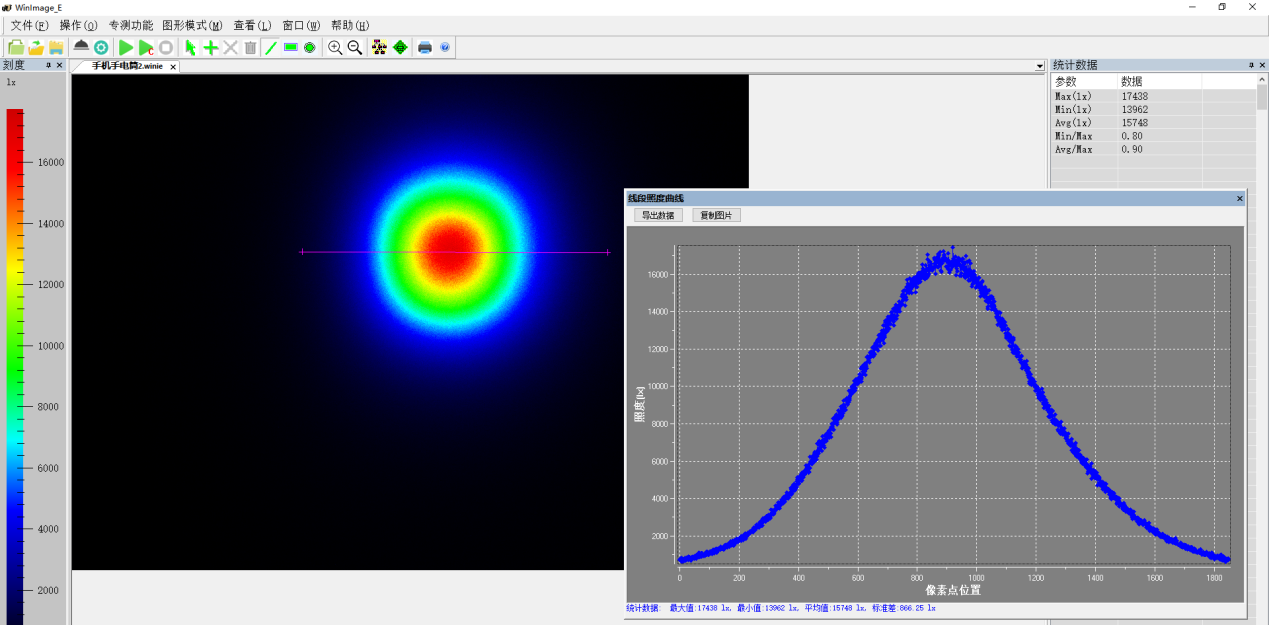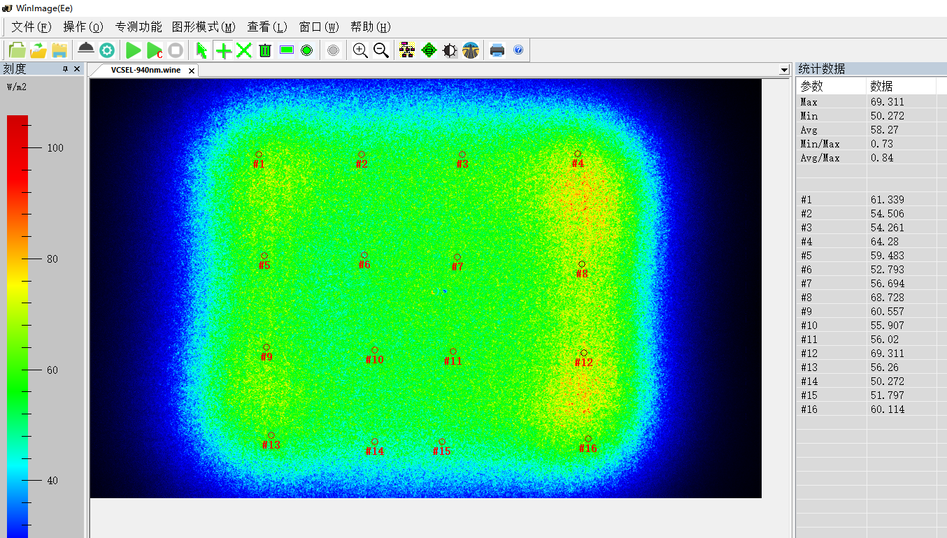 分板軟件:可定制擴(kuò)展到紅外1000nm,用于測(cè)量紅外LED,VCSEL激光的光型輻照度分布。