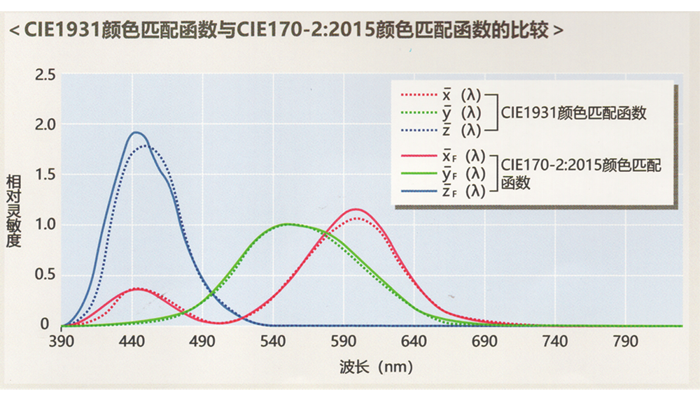 CIE170-2:2015 作為具有更符合人眼視覺特性的顏色匹配函數(shù),由CIE(國際照明委員會)于 2015年公布。通過使用 CIE170-2:2015 顏色匹配函數(shù),可期待在廣色域顯示屏的測量中獲得更接近目視的測量結(jié)果。